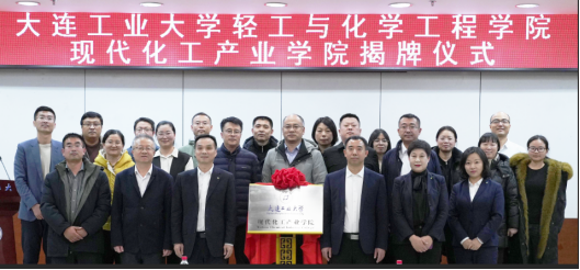 学校教务处、招生就业处、校企联盟办公室(校友总会)等相关职能部门负责人,产业学院成员企业代表大连中汇达科学仪器有限公司总经理崔贺民,大连九合表面技术有限公司研发经理郭颖浩,学院领导班子成员、现代化工产业学院负责人及师生代表共50余人参加本次揭牌活动。