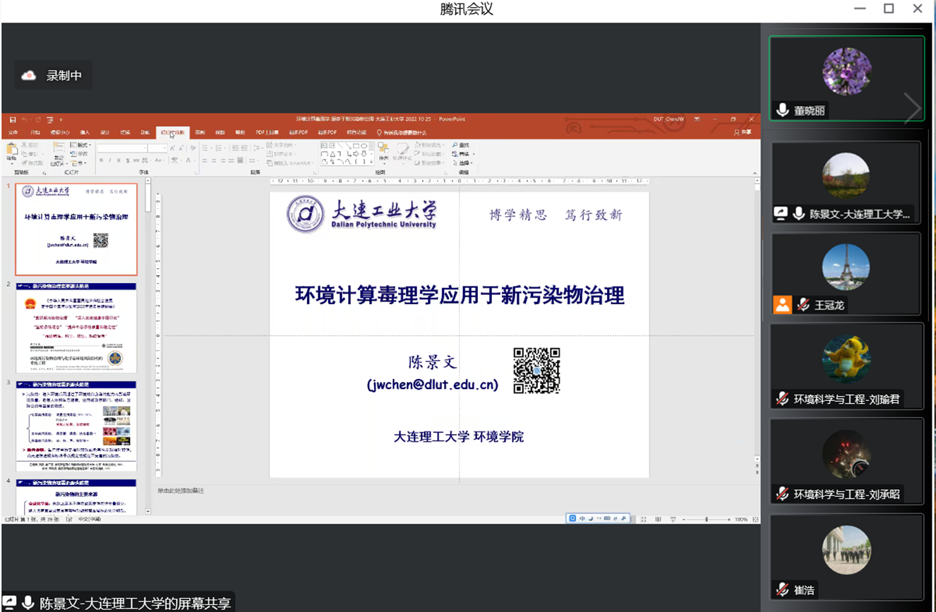 10月25日晚,大连理工大学陈景文教授应437437必赢国际环境工程专业邀请与我校师生开展线上学术交流。