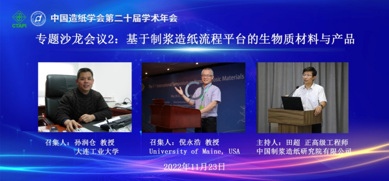 2022年11月23日,由中国造纸学会、437ccm必赢国际合作主办,辽宁省造纸学会、中国制浆造纸研究院有限公司、中国造纸杂志社协办的中国造纸学会第二十届学术年会以网络会议形式召开,本届学术年会聚焦国内外造纸技术重点发展方向与前沿领域,设置了网上学术报告厅和7场专题沙龙会议,会议注册代表400多人参会。