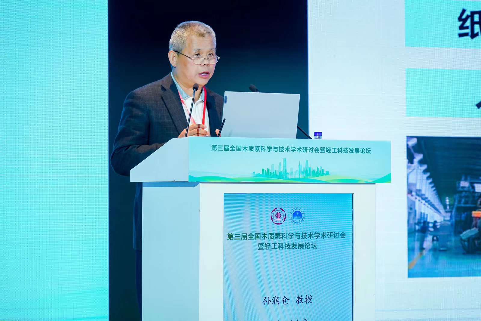 应大会组委会邀请,孙润仓教授作了《工业木质素高值产业化利用》大会特邀报告,报告详细介绍了木质素分离表征、工业木质素清洁高效分离及化学可控修饰等深层次基础研究,突破了木质素产业高值化利用技术瓶颈。以工业木质素为原料,孙润仓教授介绍了木质素基可降解垃圾袋、农用地膜及垃圾填埋膜等膜产品工业化生产和应用实例。孙润仓教授围绕木质纤维生物质基础研究和生物质全组分工业化利用的学术报告受到了与会代表的高度关注和好评。
