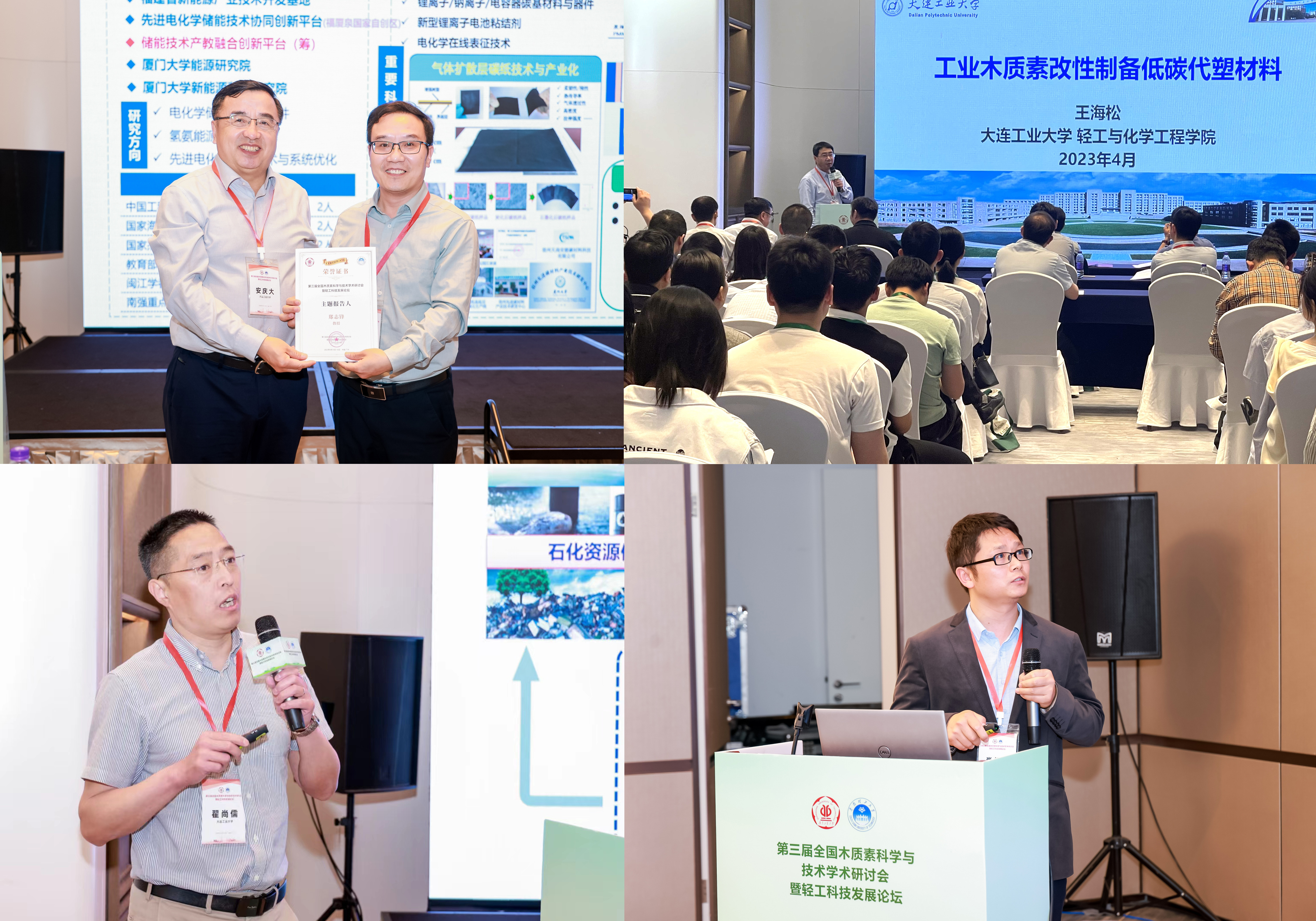 应组委会邀请,副校长安庆大主持”木质素功能材料“主题论坛;王海松教授、翟尚儒教授和肖领平副教授分别作了《工业木质素改性制备低碳代塑材料》、《木质素基环境功能材料制备与性能研究》和《基于铜基体系的木质素催化氢解研究》主旨报告。